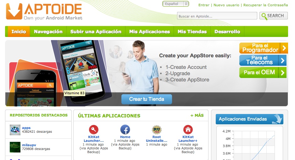 Aquí encontrarás muchas aplicaciones no disponibles en Google Play, mayoritariamente aplicaciones en sus inicios, de desarrolladores noveles. No ofrece las aplicaciones más populares pero sí apps singulares que valen tomarse el desvío. Dispone de su propia app y lo mejor son los avisos de actualización de lo que tengas instalado.