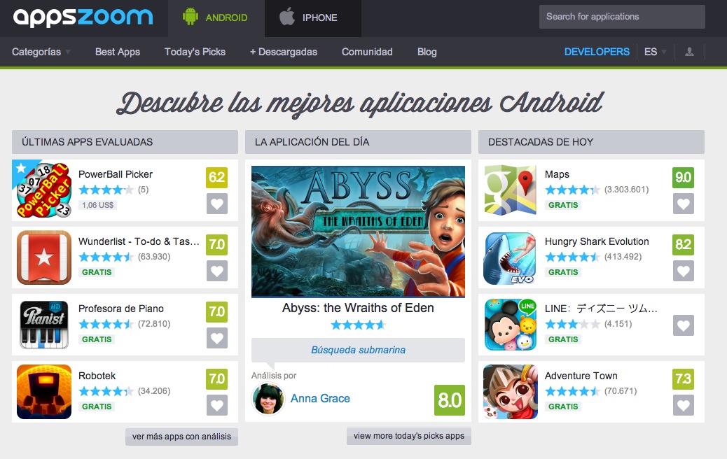 Base de datos muy bien diseñada de aplicaciones Android, algunas de descarga directa y otras a través de Google Play; también dispone de su propia aplicación desde la que realizar consultas a su base de datos desde tu dispositivo Android. Lo mejor son las valoraciones de la comunidad de usuarios y sus análisis de apps.