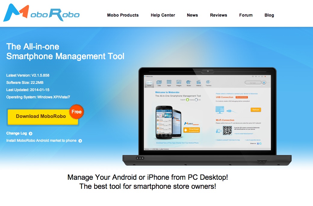 Moborobo no es exactamente una tienda online sino un gestor muy completo para tu dispositivo Android que ofrece a modo de guinda en el pastel la posibilidad de descargar gratuitamente aplicaciones Android y juegos. Pero esto no es todo, también permite la descarga de fondos de pantalla, temas visuales y tonos para tus llamadas.