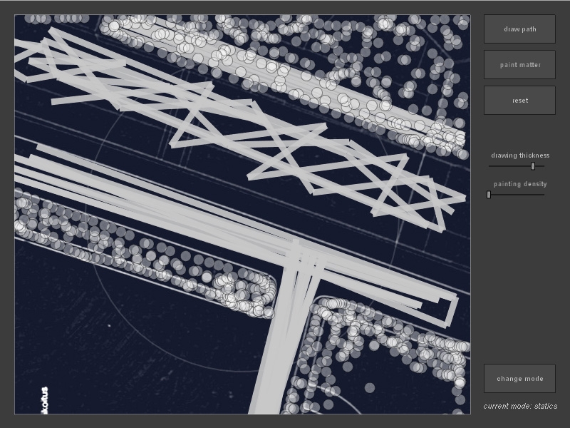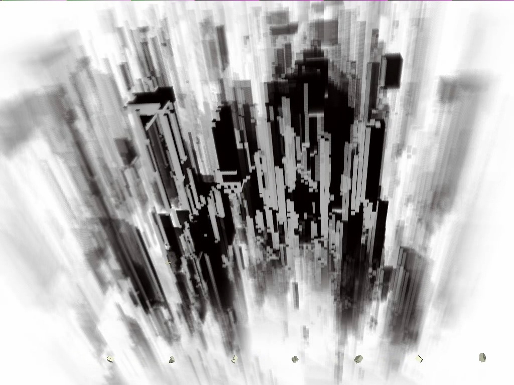 Dentro de la misma línea conceptual, dos años antes había desarrollado Boceto de una ciudad generada, una exploración de software, esta vez al servicio de cómo pensar el espacio urbano. Desde el análisis de conjuntos neuronales complejos y sus comportamientos globales, Castro-Castilla propone una metodología para diseñar una ciudad. Estas redes permiten ser excitadas por un serie de estímulos [datos], por lo tanto la idea es combinar los dos modelos (autómatas celulares y mapas auto-organizados) para mostrar cómo una ciudad crecería y se reduciría, cómo sería la experiencia de la creación de una ciudad diseñada automáticamente. “Por un lado, los mapas autoorganizados son muy adecuados para la simplificación y reducción de la complejidad espacial a subespacios tratados por una neurona o nodo. Por otra parte, los autómatas celulares son muy potentes describiendo de manera sencilla los procesos que ocurren a escala local, en función de la interacción de células o nodos”, explica el artista.