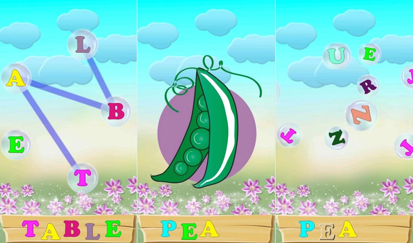 La aplicación está muy bien diseñada, visual y divertida. Los niños tienen que atrapar las letras flotantes en burbujas. Oirán cómo se pronuncia cada letra y al recomponer la palabra verán una ilustración de ella junto a la pronunciación de la palabra entera. Ayuda los niños con la ortografía de las palabras en inglés y su pronunciación. La longitud de las palabras va desde tres hasta cinco letras, cada palabra teniendo sus propios efectos de audio.