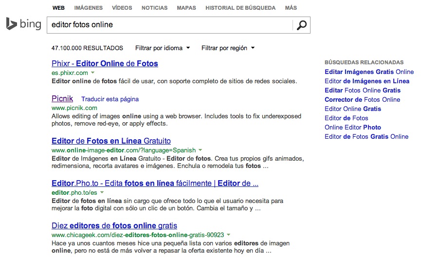 Bing… dime algo que no sepas. ¿Es Bing mejor que Google? Si tienes una opinión al respecto, únete al debate aquí. Por ahora parece que Bing está perdiendo la batalla aunque hay que reconocer que es uno de los contrincantes de más peso frente a Google. Aún así, su cuota de mercado apenas logra alcanzar una vigésima parte de lo que Google consigue.