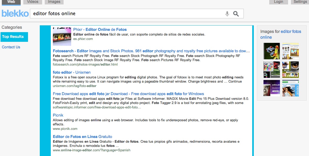También hay que decir que se trata de un buscador web colaborativo en el sentido que puedes hacerte editor de Blekko para ayudar a clasificar los resultados en categorías. De esto modo, al realizar una consulta en Blekko, los resultados se ordenarán usando esas categorías que ellos llaman slashtags. Aquí, tus acciones pueden tener un impacto en la forma de mostrar los resultados.