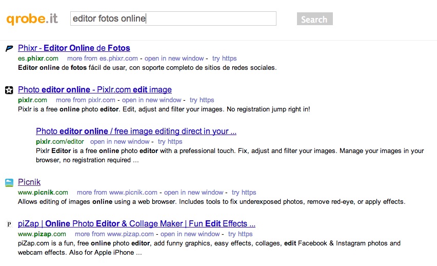 Es decir que no rastrean ni analizan tu perfil de usuario, no usan cookies de identificación ni permiten que nublen tu visita cualquier otro cookie comercial procedente de la publicidad. Integran la calificación del sistema WOT. Por último, tienen algo parecido a los Bang! de DuckDuckgo!, aquí llamado PowerSearch. Y es que si deseas realizar una búsqueda desde Qrobe pero que te devuelva resultados exclusivos de Youtube por ejemplo, basta con teclear palabras claves /yt.