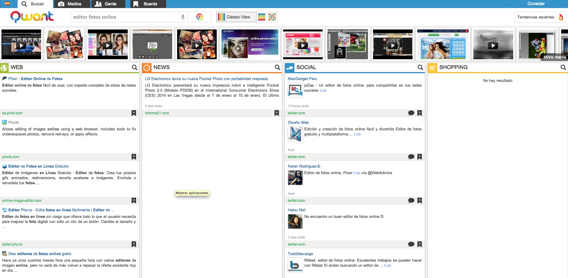 Cerramos esta lista con este buscador galo de reciente creación. Usa los principales buscadores web para cosechar datos pero los arroja de un modo distinto a todos los demás, dividiendo los resultados web, las noticias, reacciones en las redes sociales y productos en venta. También puedes ver los resultados con un estilo lista más tipo Google o bien al estilo Pinterest.