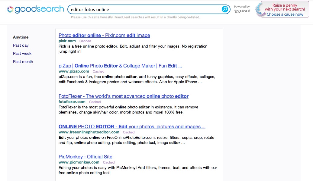 Goodsearch es un buscador web con fines caritativos. Usa el motor de búsqueda de Yahoo pero aporta una singularidad que lo hace atractivo, y es que las ganancias que obtiene de la publicidad se reparten con asociaciones caritativas de todo el mundo. Puedes hasta elegir la organización caritativa que recibirá el dinero resultante de tu actividad en Goodsearch.