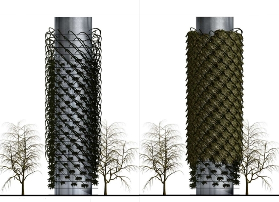 La arquitectura biomimética llega a puntos muy elevados en los proyectos del estadounidense Dennis Dollens. Su búsqueda es cuestionar los límites del consumo y su impacto en el medioambiente. La biomimética es una disciplina que toma de la naturaleza su capacidad de ahorro energético y resistencia, justamente para pensar en un cambio real de los modos de producción. Avanza en términos de sustentabilidad. Dollens lleva el mismo concepto a la arquitectura; estudió métodos de la botánica para desarrollar construcciones generativas, tanto en experiencias directas como con simulaciones informáticas mediante los sistemas L-Systems y Xfrog. Su propuesta no se queda en la superficie de copiar el diseño de un árbol, sino que expone nuevos sistemas que funcionan como la naturaleza, para que la arquitectura tome nuevas direcciones.