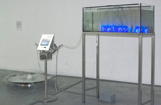 Esta artista alemana es autora de The greenhouse converter, una instalación donde interactúan pulgas de agua (daphnia magna), algas (Hydrodictyon reticulatum, Volvox globator) y el espectador mediante un sistema tecnológico simple. A la izquierda ubicó una fuente de agua enriquecida con dióxido de carbono que llega hasta un acuario mediante un conducto. El agua sirve de alimento a una comunidad de algas que por acción de la luz produce biomasa y oxígeno. Adentro del acuario hay un cartel con la palabra Beloved [querido] escrita en luces de led azules. Paralelamente, un conjunto de pulgas, atraídas por la luz azul, cuidan que las algas no crezcan exageradamente y, por ejemplo, no tapen el cartel. Si las pulgas se multiplican desproporcionadamente, la pantalla cambia al color rojo, para que las algas crezcan libremente, o al amarillo para que las pulgas se hagan a un costado y directamente no actúen.