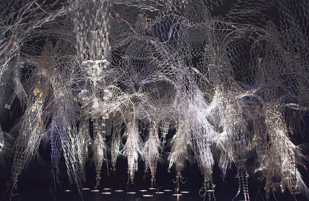 Este bosque artificial se programa en distintos niveles de actividad para favorecer una conducta espacial coordinada. Son exactamente treinta y ocho controladores y un sensor local que regulan todos los comandos. La instalación manifiesta una obsesión: la respiración orgánica que se agita para envolver a sus exploradores humanos. La obra rompe con definiciones convencionales de “naturaleza” y “artificio”, propone una comunicación más amplia entre el humano y los objetos que conforman su entorno.