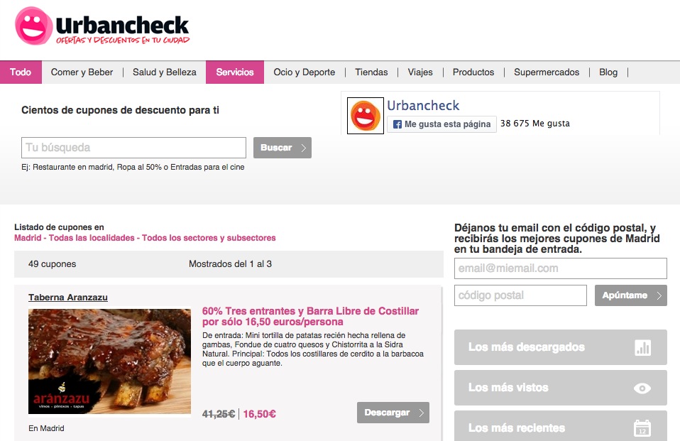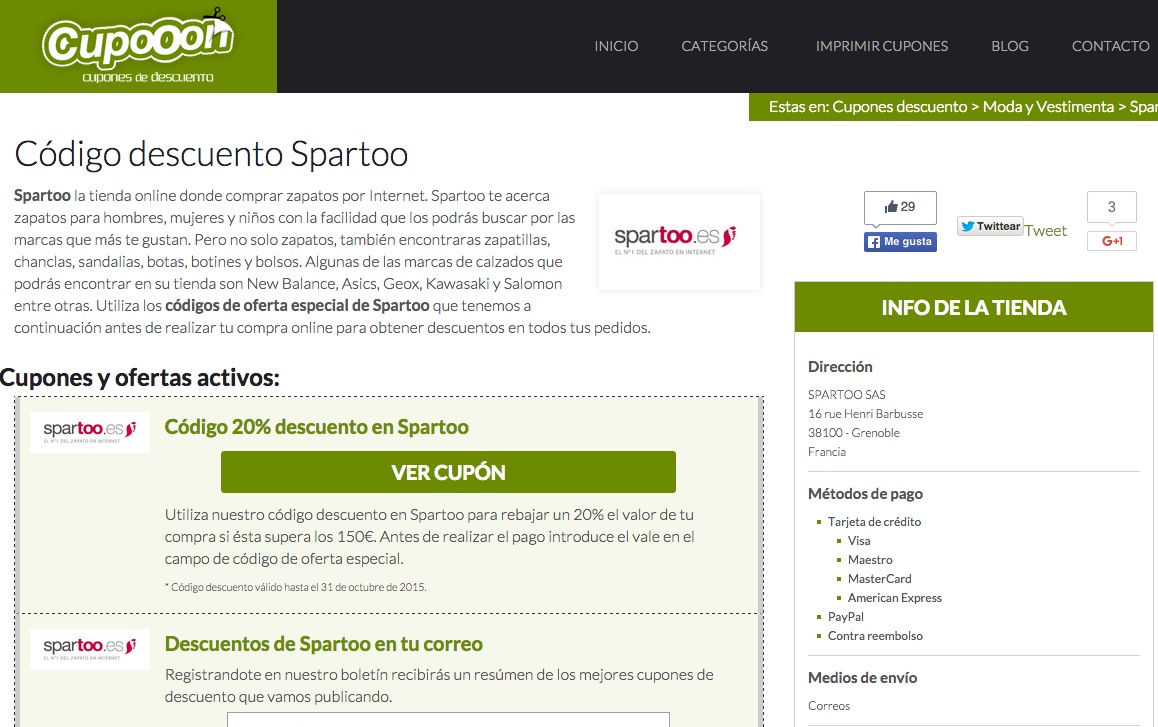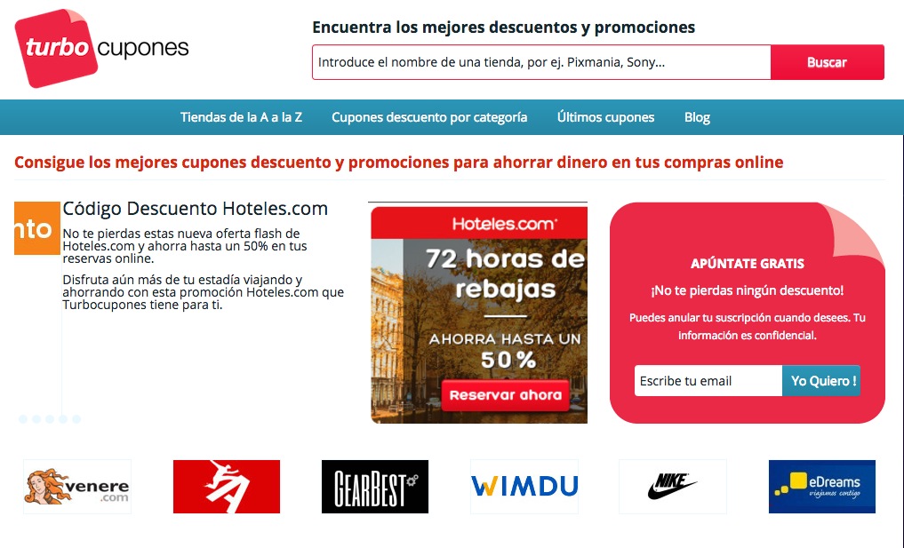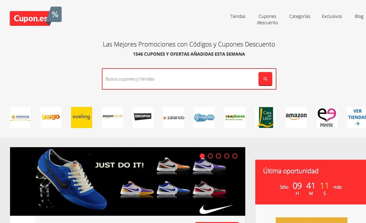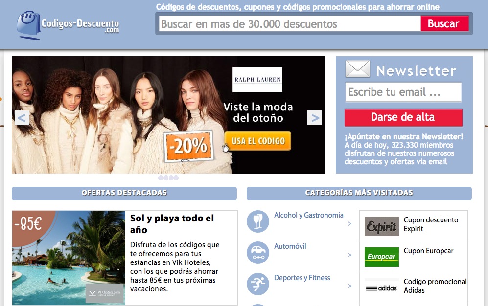 La ventaja es que en la mayoría ni hace falta registrarse ni pagar ningún tipo de cuota… sólo grabar el código necesario para así acceder a la oferta o tener a la impresora calentando motores. Si bien es cierto que algunas páginas no están del todo actualizadas, otras como cupones.es comprueban la validez de cada uno de los cupones que ofrecen.
