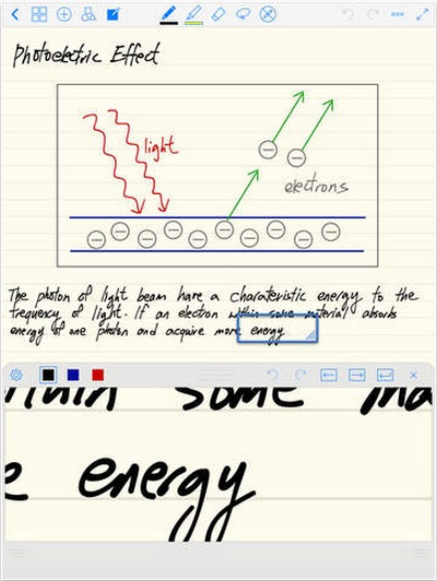 Penultimate es la app para tomar apuntes a mano de Evernote, lo que trae como ventaja su integración con este último. Esto significa que tienes la posibilidad de sincronizar tus apuntes con Evernote y acceder a ellos desde cualquier dispositivo… es como tener tus apuntes en la nube, perfectamente sincronizados y fácilmente localizables. Para los usuarios de Evernote, Penultimate se está convirtiendo en su opción más natural.