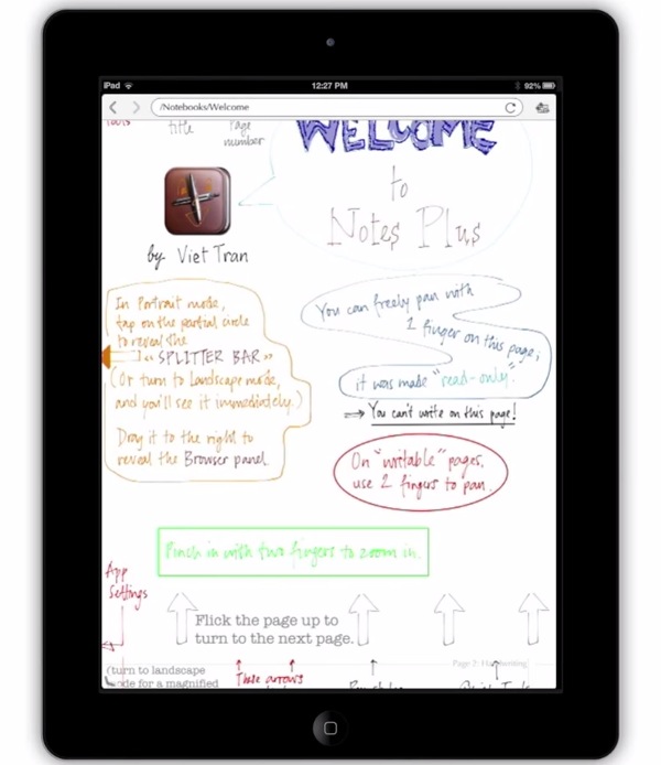 Note Taker HD es la última app de escritura manuscrita para iOS de este artículo. Algunos dicen que a ella sola justifica la compra de un iPad. Tanto, no lo sé. Pero desde luego está pensada para los amantes de los apuntes y los croquis. No es la más indicada para el dibujo creativo, aunque ya sabes que a la hora de crear las herramientas son lo de menos. Es una solución robusta y completa, que no sofisticada, para los que buscan usar el iPad para escribir a mano apuntes o agregar anotaciones en documentos PDF por ejemplo.