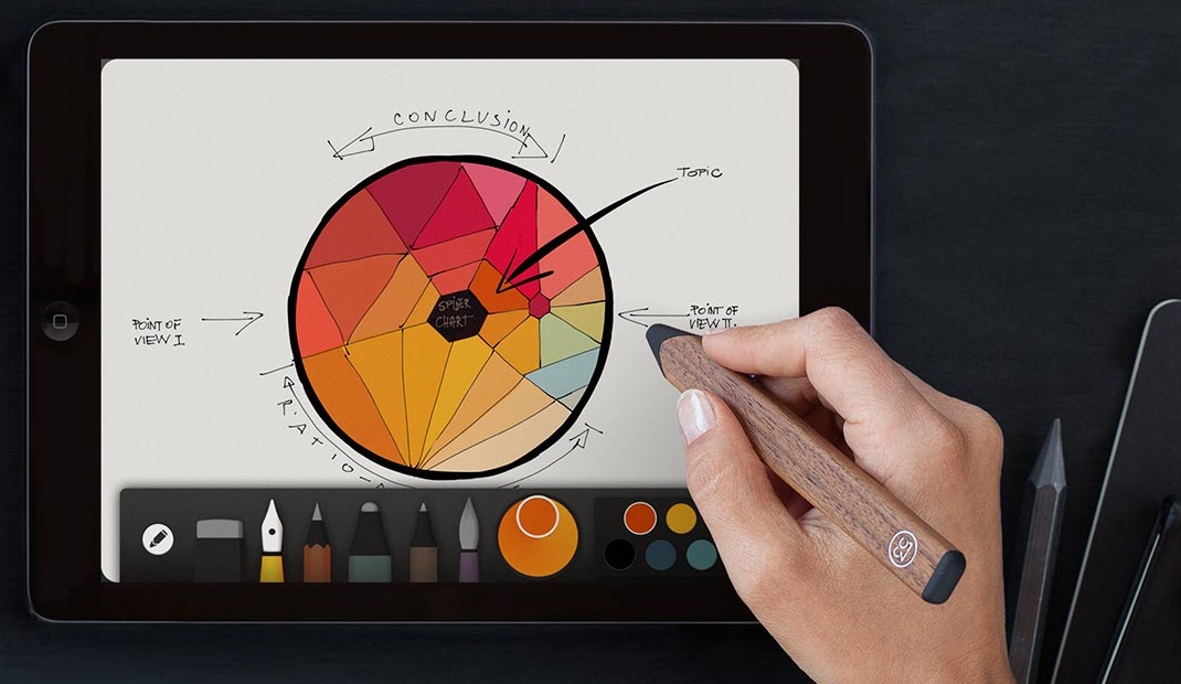 Paper te permite crear toda una colección de cuadernos que puedes imprimir gracias a su colaboración con Moleskine… del iPad al papel. Tus ideas, dibujos, bosquejos o garabatos también puedes compartirlo todo en tus redes sociales o por email. Paper es la más impactante visualmente hablando, la app con mejores acabados con una sensación muy similar a la de escribir o pintar en papel, y más si se usa su stylus, el Pencil. La app es gratis aunque para sacarle provecho es necesario comprar desde Paper nuevas herramientas de dibujo.