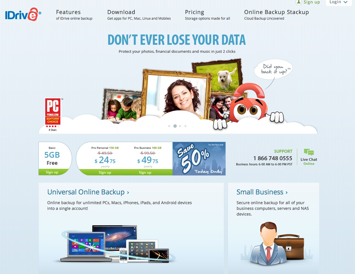 Ofrece 2GB de espacio online totalmente gratuito para realizar copias de seguridad automáticas, usarlo como unidad virtual o como repositorio para archivar versiones de un mismo fichero. La única pega es que sólo sirve, en su versión gratuita, para hacer copias de un ordenador, aunque puedas recuperar tus archivos desde otro. No es igual que DropBox o SpiderOak. En cambio, en la versión Pro hay varias formulas para uso personal que cuesta 4,95$ al mes por ordenador, un pack familiar de hasta cinco ordenadores y 500GB de espacio por 15$ al mes, y varias modalidades para pequeñas empresas, desde 50GB hasta 1000GB de espacio.
