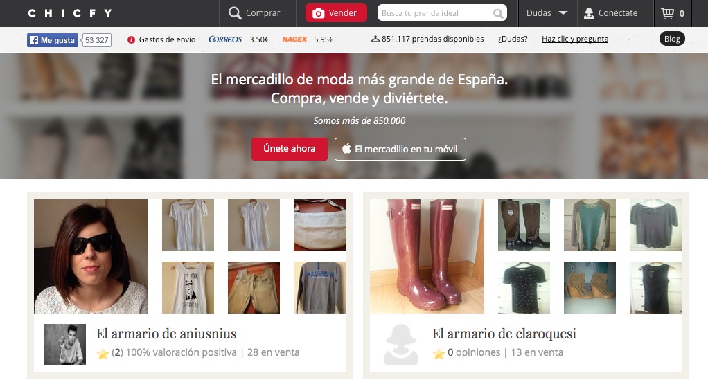 Chicfy son más de 10.000 prendas de ropa añadidas cada día, más de 8.000 marcas con descuentos de hast ale 80% respecto al precio de venta en tiendas, también es cerca de un millón de usuarios fanáticos de la moda a precios ajustados. El inventario es increíble, probablemente sea gracias a un proceso de lo más usable a la hora de poner a la venta prendas que ya no usas o buscar nuevas piezas para renovar tu armario. Lo mejor es sin duda su app para iOS, luego la posibilidad de entrar en el armario de cualquier usuario a buscar gangas. Es una autentica comunidad, con una capa social muy sólida en la que puedes negociar en el acto.