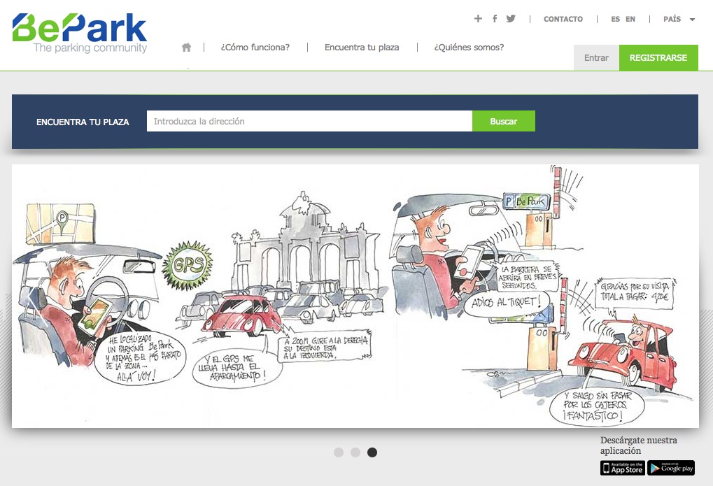Bepark es una red de aparcamientos urbanos europea con presencia en España. Su mayor ventaja es que todo se gestiona a través de su app para el móvil, desde la localización de aparcamientos cercanos a tu ubicación hasta el pago automático pasando por el acceso al parking mediante el uso de tu móvil; está disponible tanto para Android como iOS. Es decir que no tienes que reservar ni sacar tíquet a la entrada ya que basta con presentar el móvil y listo. Lo mismo al salir, que es cuando se te cargará en la tarjeta el importe del parking.