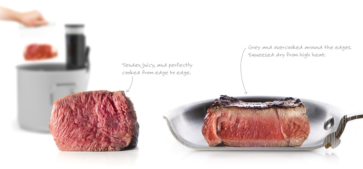 El concepto es radicalmente diferente ya que se aleja de la idea de un utensilio portátil que se pueda usar con cualquier cacerola o recipiente. El objetivo deseado aquí es el de ofrecer una solución completa cuyo aspecto se asemeja al de un robot de cocina profesional. Por ello, es mucho más que un simple circulador de inmersión ya que si bien permite la cocción al vacío controlando la temperatura, también puede mantener los alimentos a la misma temperatura que dentro de una nevera.